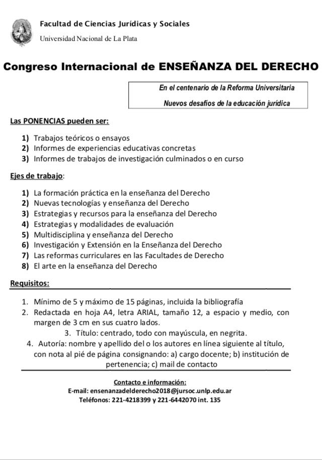 Más info: http://ensenanzaderecho.jursoc.unlp.edu.ar/